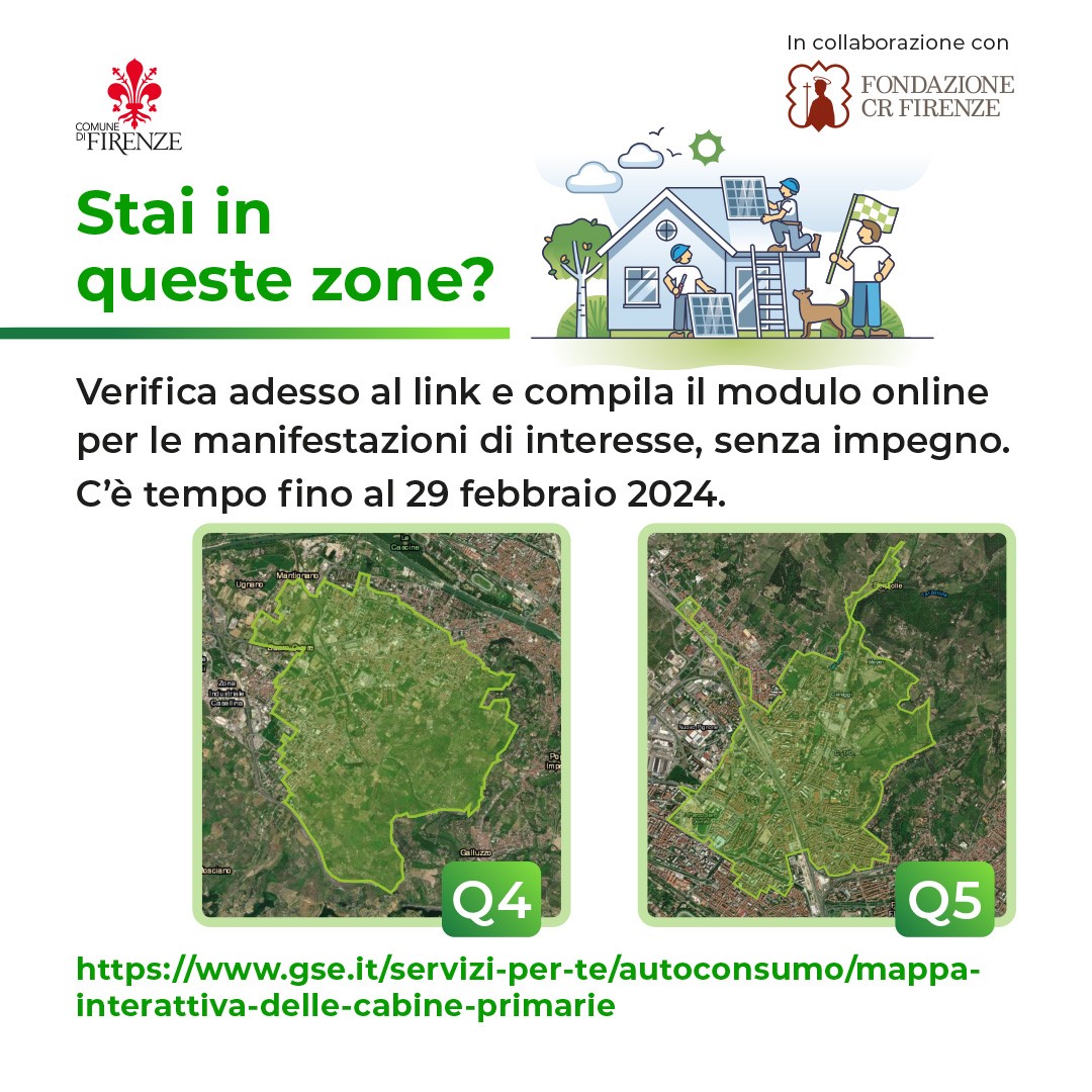 Il Comune di Firenze intende costituire due Comunità Energetiche Rinnovabili (CER) sul territorio comunale, una inserita nel territorio del Quartiere 4 ed una inserita nel territorio del Quartiere 5.
